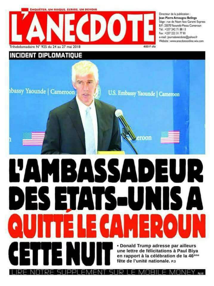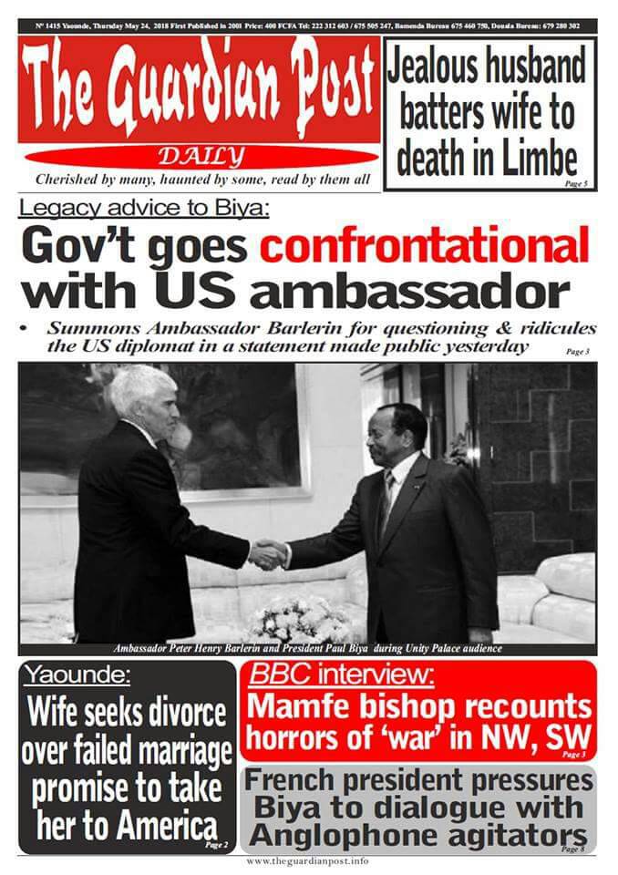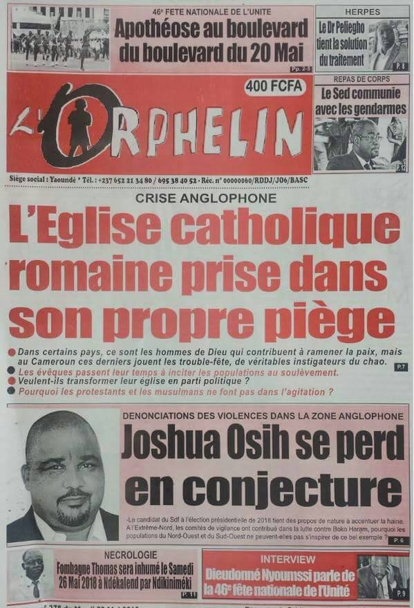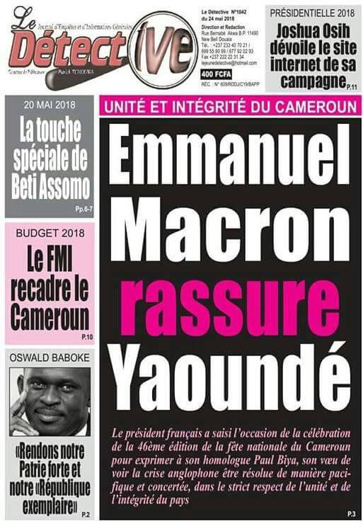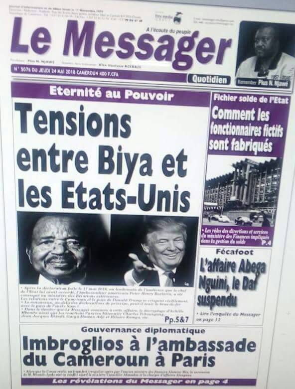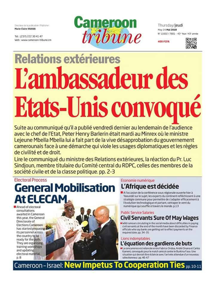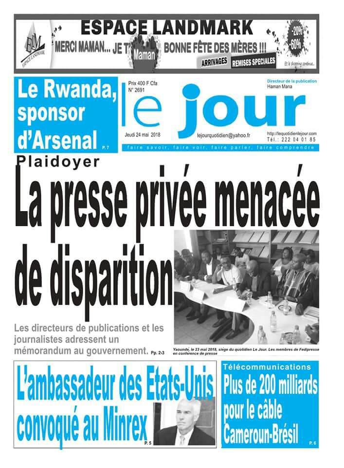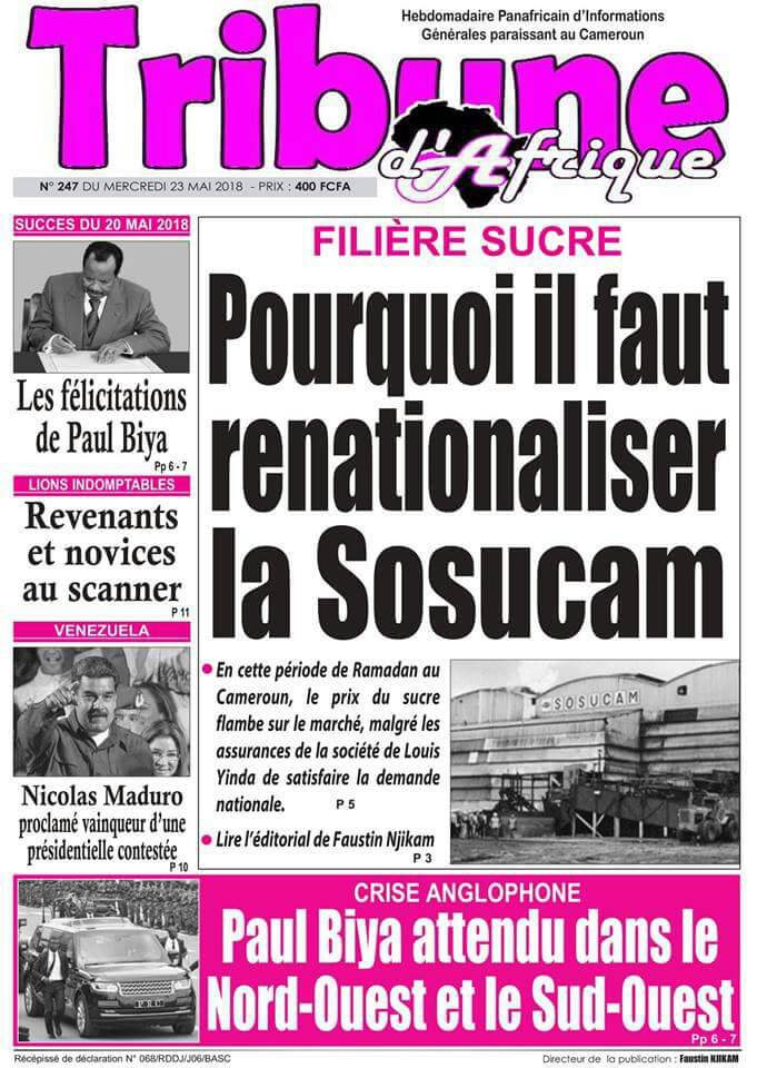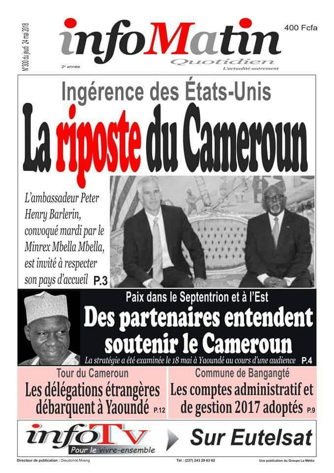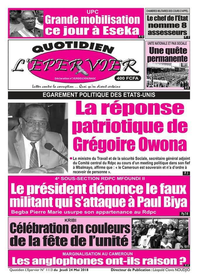 ActualitéAu QuotidienCamerounLes UnesPolitique En kiosque: les Une du 24 mai 2018 by Hiatsoon 01 24 mai 2018 written by Hiatsoon 01 24 mai 2018 0 comments 105 Share 0 FacebookTwitterPinterestThreadsBlueskyEmail Hiatsoon 01 Administrateur previous post En kiosque: les Unes du 23 mai 2018 next post Film documentaire : les paroles de S.M Namekong Jean Pierre You may also like Communiqué COBADE 17 juin 2023 Vidéo : Dagondland au service de la Jeunesse scolaire de Batcham Chefferie 7 juin 2023 L’eau potable coule dans le Secteur King Place 30 mars 2023 Qui est le Pr Luc Djoussé ? 15 mars 2023 Message du Chef Supérieur à l’occasion de la sortie du premier numéro du journal... 15 mars 2023 Le symbolisme ou le message du masque dans la tradition africaine, par le Pr... 14 mars 2023 Leave a Comment Cancel Reply Save my name, email, and website in this browser for the next time I comment.