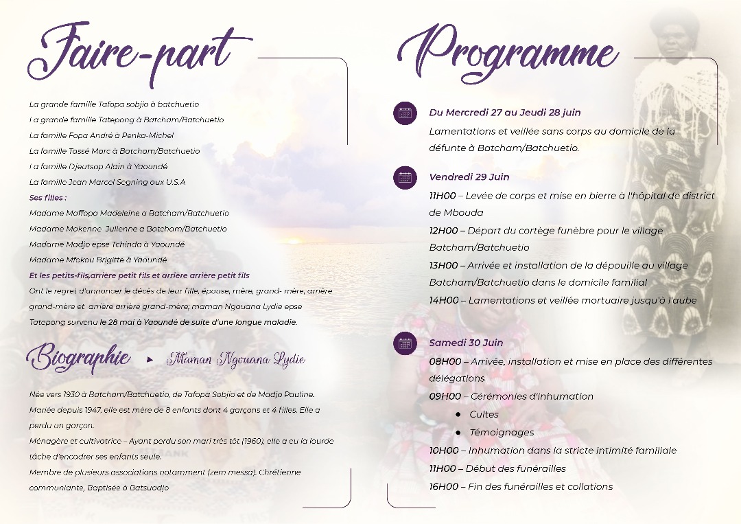 Non classé Batchuetio: Obsèques de Maman NGOUANA Lydie, 1930 – 28 mai 2018 by Hiatsoon 01 5 juin 2018 written by Hiatsoon 01 5 juin 2018 0 comments 106 Share 0 FacebookTwitterPinterestThreadsBlueskyEmail Hiatsoon 01 Administrateur previous post Crime crapuleux à Mbouda ce jour 03 juin 2018 next post MINAC : Avis de concours littéraire national jeunes auteurs You may also like Les réalisations de la Mairie dans le Groupement Batcham de 2013 à 2019 3 février 2020 Roger Mondoué et Aristide Yemmafouo, désormais Professeurs titulaires des Universités 23 décembre 2019 Réflexion sur le développement de Batcham 24 novembre 2019 Album 02 : Cérémonie d’installation du Chef de la Communauté Batcham de Yaoundé, images... 4 novembre 2019 Grand dialogue national : les anglophones parlent 5 octobre 2019 JUVENTUS de zuac zuac et ATHLETICO de Toumgwang qualifiées pour les demi-finales de la... 24 juin 2019 Leave a Comment Cancel Reply Save my name, email, and website in this browser for the next time I comment.