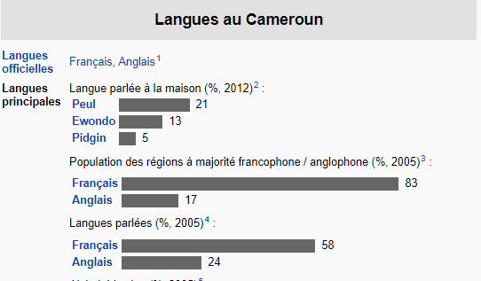 Les langues vivantes renvoient à l’espagnol, l’allemand, le chinois ou l’italien. Toutes ces langues sont classées au premier groupe des matières de ces classes, dont prioritaires. Elles sont 3 heures d’enseignement par semaines et valent pour trois coefficients. Les langues nationales quant à elles sont elles aussi inscrites au programme mais au deuxième groupe des matières, où elles sont enseignées pendent une heure par semaine et valent pour un coefficient, au même titre que le travail manuel. Inutile de rappeler que les autres matières sont déjà enseignées en français, qui pèse de ce fait d’un poids inégalé dans tout le système éducatif. Les nouvelles séries mettent l’accent sur les langues étrangères, alors qu’on s’attendait à revaloriser les langues locales, comme le commente une étudiante en anthropologie à l’Université de Douala.