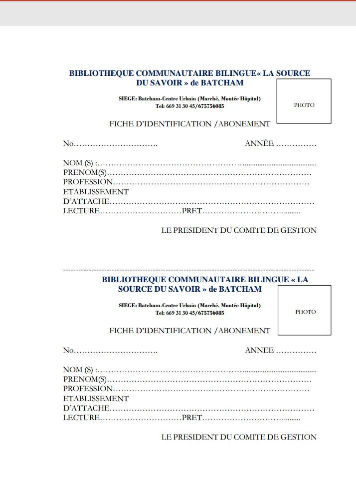 ActualitéAnnoncesAssociationsBon à savoir !DocumentsEducation Abonnement à la Bibliothèque source du Savoir de Batcham Ville by Hiatsoon 01 21 mars 2019 written by Hiatsoon 01 21 mars 2019 0 comments 109 Share 0 FacebookTwitterPinterestThreadsBlueskyEmail Hiatsoon 01 Administrateur previous post Quel aliment pour votre la santé ? next post Tournoi de Fraternité de la COBY : journée du 17 mars 2019 You may also like Communiqué COBADE 17 juin 2023 Vidéo : Dagondland au service de la Jeunesse scolaire de Batcham Chefferie 7 juin 2023 L’eau potable coule dans le Secteur King Place 30 mars 2023 Qui est le Pr Luc Djoussé ? 15 mars 2023 Message du Chef Supérieur à l’occasion de la sortie du premier numéro du journal... 15 mars 2023 Le symbolisme ou le message du masque dans la tradition africaine, par le Pr... 14 mars 2023 Leave a Comment Cancel Reply Save my name, email, and website in this browser for the next time I comment.
