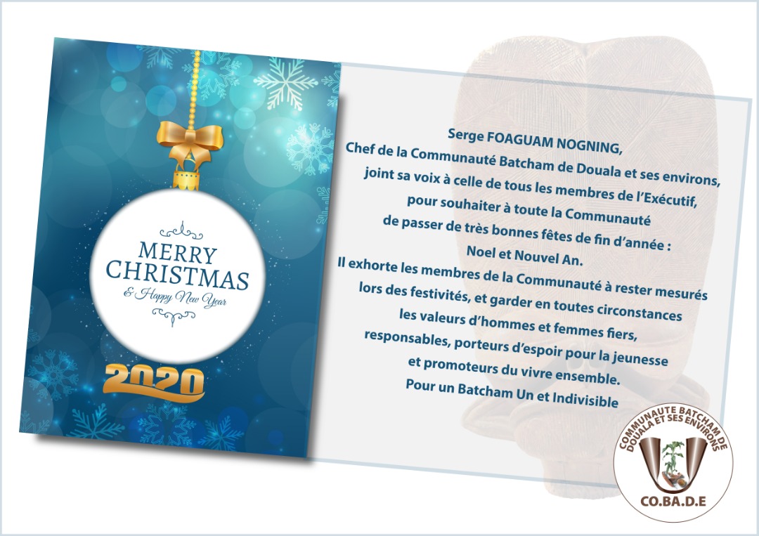 Actes et MessagesActualitéAu QuotidienCOBADE COBADE : les vœux de Noël 2019 et de Nouvel An 2020 à la Communauté by Hiatsoon 01 24 décembre 2019 written by Hiatsoon 01 24 décembre 2019 0 comments 108 Share 0 FacebookTwitterPinterestThreadsBlueskyEmail Hiatsoon 01 Administrateur previous post COBADE : la première édition de Noël en famille par ACEEB a eu lieu ce 22 décembre 2019 au foyer Fiela next post RDV du 28 décembre 2019 : Ngiemboon sur les Ondes 5 ans déjà ça se fête You may also like Communiqué COBADE 17 juin 2023 Vidéo : Dagondland au service de la Jeunesse scolaire de Batcham Chefferie 7 juin 2023 L’eau potable coule dans le Secteur King Place 30 mars 2023 Qui est le Pr Luc Djoussé ? 15 mars 2023 Message du Chef Supérieur à l’occasion de la sortie du premier numéro du journal... 15 mars 2023 Le symbolisme ou le message du masque dans la tradition africaine, par le Pr... 14 mars 2023 Leave a Comment Cancel Reply Save my name, email, and website in this browser for the next time I comment.