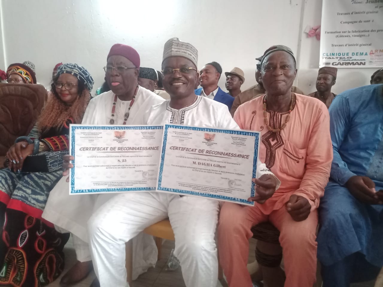 A cette occasion, le Chef de la Communauté, Sa Dignité Tatang Bogning Robert, a exprimé sa reconnaissance, à travers la remise des attestations aux organisations et personnalités qui avaient soutenues l’organisation de sa cérémonie d’installation et de prise de fonction, en novembre 2019. L’association Solidarité du 25, S25, ainsi que son Président Shoufouo Dagha Gilbert, dit DG, faisaient partie des récipiendaires.